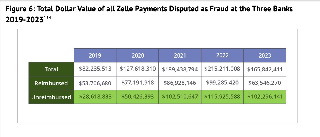 Μόνο το 2023, οι καταναλωτές έχασαν περί τα 210 εκατ. δολάρια στις ΗΠΑ από απατεώνες που λειτουργούσαν μέσα από εφαρμογές πληρωμών. Πρόκειται για αύξηση 62%, μέσα σε μία διετία. Ωστόσο, συχνά αποδεικνύεται ιδιαίτερα δύσκολο για τους καταναλωτές να αποζημιωθούν αυτές οι απώλειες. Οι μεγάλες τράπεζες στις ΗΠΑ, που συνεργάζονται με το Zelle Network μέσω της λειτουργικής εταιρείας Early Warning Services, συχνά αρνούνται να αποζημιώσουν τους πελάτες τους που εξαπατήθηκαν μέσω τέτοιων υπηρεσιών.